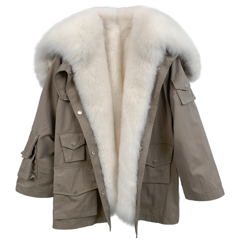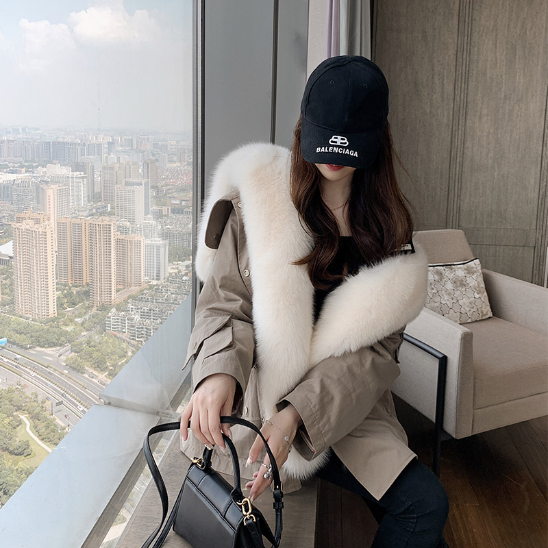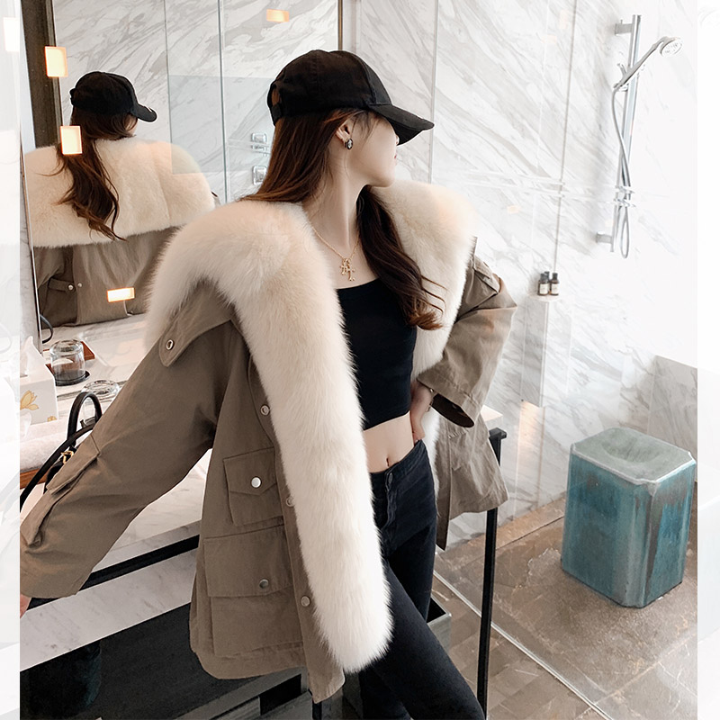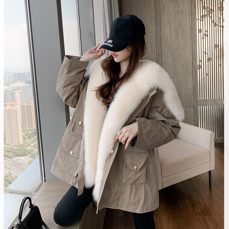 2022 Winter New Rex Rabbit Fur Liner Women's Detachable Fur Fox Fur Large Fur Collar Mid-length Pie Overcoat