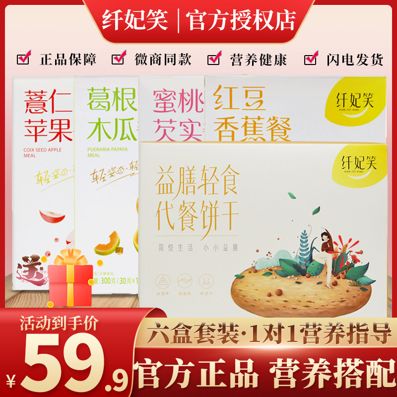 Xifei Xiao meal replacement powder thousand biscuits official website six boxes of red beans, bananas, coix seeds, apples, papaya, kudzu set meal