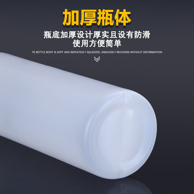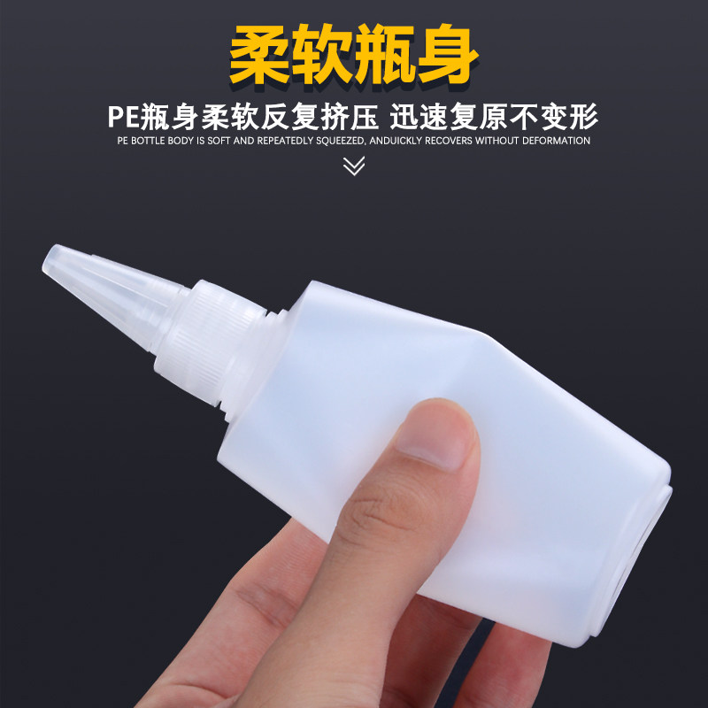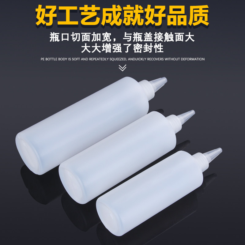 30 ml translucent pointed mouth bottle (1) 50 ml translucent tip bottle (1) 100 ml translucent pointed mouth bottle (1) 500 ml translucent tip bottle (1)