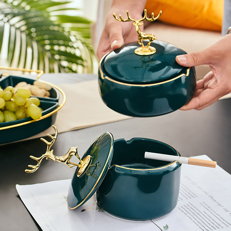 Green round body deer lid Ashtray White Round Body Deer Cover Tobacco Ashtray Ink Green Dwarf deer Gay Ashtray Bull Gas ash Ashtray-Green Bull Pistaty-Smoke Ash Trays-White Niu Gas Rind Smoke