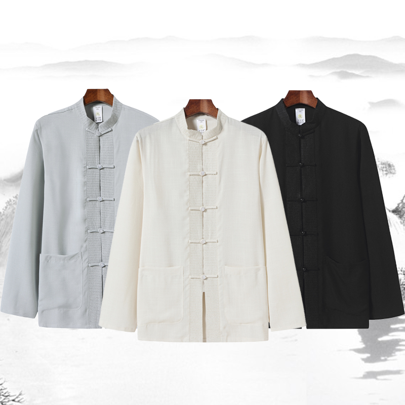 Tang suit men's autumn and winter elderly clothes grandpa silk embroidered men's Chinese style long-sleeved suit middle-aged and elderly father's clothes