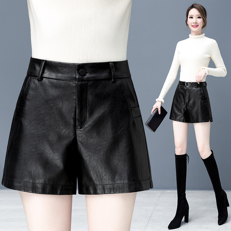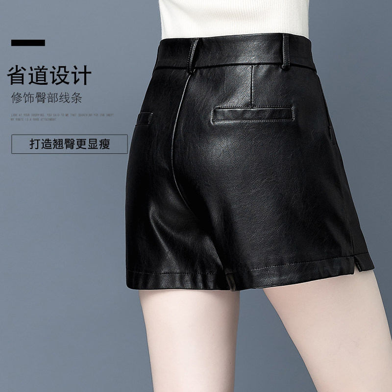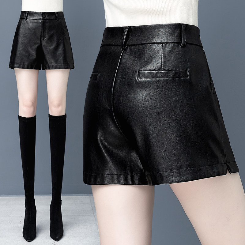 pu leather pants shorts women 2022 new exploits spring autumn high waist fashion a character wide leg winter outside wearing boots pants