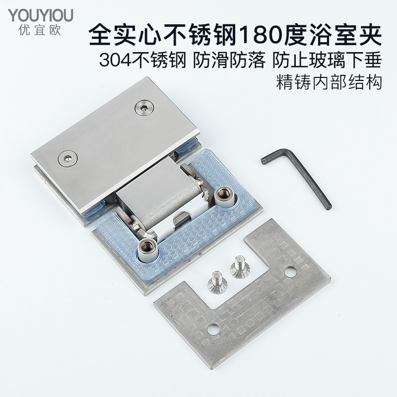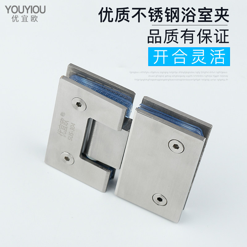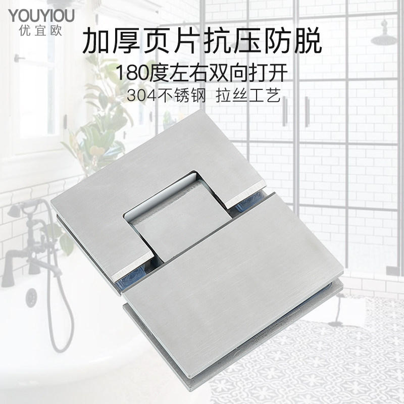 Glass door clip thickened 304 stainless steel bathroom clip shower room hinge frameless hinged toilet 180 degree fold