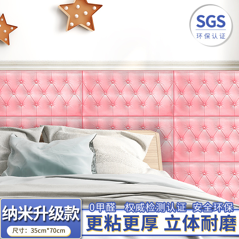 Thickened self-adhesive bed head board Soft package anti-collision tatami Kang bed perimeter 3D three-dimensional wall sticker Bedroom anti-collision wall sticker background wall decoration