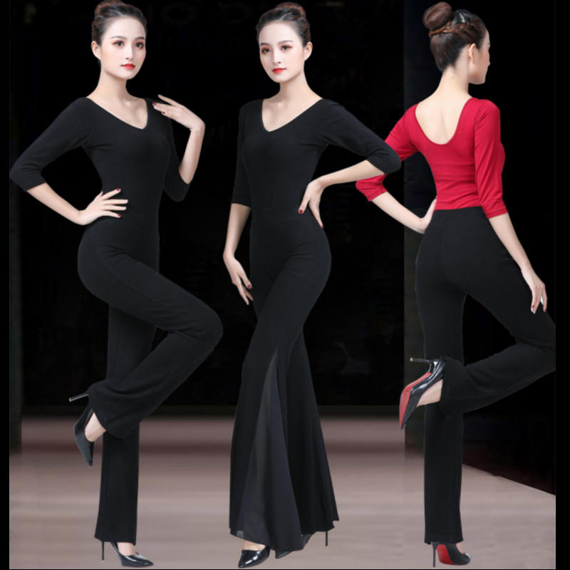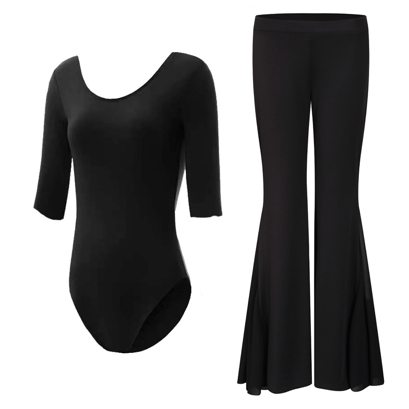 With black short-sleeved top Micro flared pants with black mid-sleeve Top Micro flared pants with Black long-sleeved top Micro flared pants with Burgundy short-sleeved top Micro flared pants with Burgundy Mid-sleeve Top