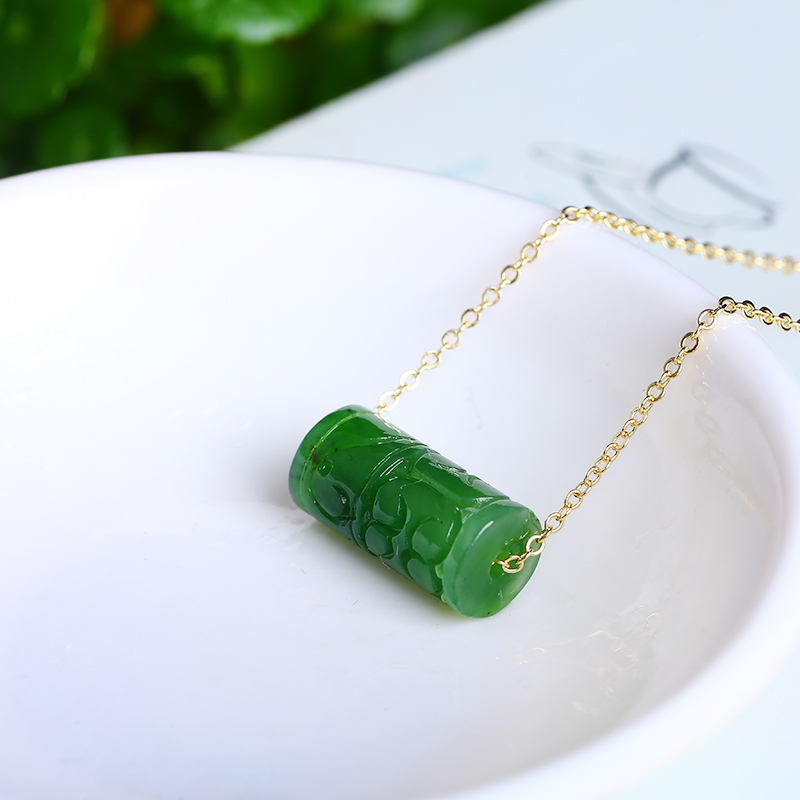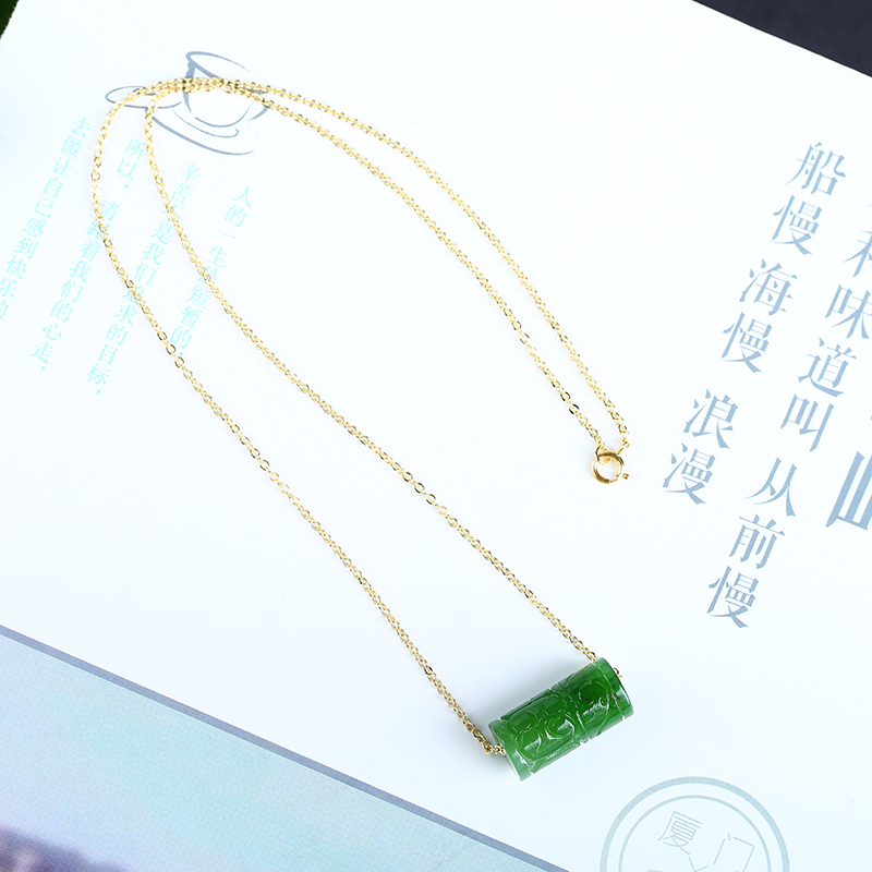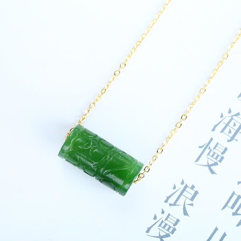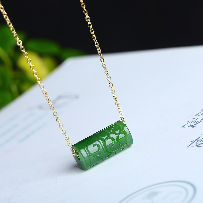 Natural Russian Hetian jade jasper back grain barrel bead pendant collarbone chain Passepartout necklace