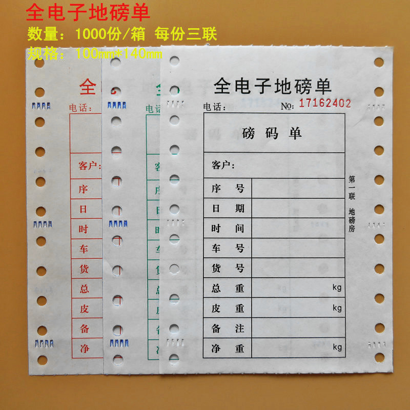 Triple all-electronic weighbridge list 1000 copies Box Quad full electronic weighbridge list 1000 copies Box Two-way all-electronic weigh-up list 1500 copies Box One full electronic weigh-up list 3000 copies Box Triple all-electronic weighing list 1000 copies 100*140-3 Triple weighing list 1000 copies Box 105*152.4 Two-link weighing list 1500 copies Box 105*152.4 Triple weighing list 1000 copies Box 105*152.4 Triple weighing list Please place an order at other links Triple Weighing Record Sheet (Unit Ton) Weighing Single Triple (Unit t) Triple 120-140 Weighing Single Triple Weighing Single 1000 Copies (Classic Edition) 100*140-3 No NumberEd Diptych Weighing Single 1500 Copies (Classic Edition) 100*140-2 No Number Triple Weighing Code Single 1000 Copies Box 100mm*140mm Triple All-Electronic Weighing Single Color Paper With Numbered 1000 Copies Box Triple All Electronic Vehicle Weighing Sheet 120*140-3 Triple Weighing Sheet (Simplified Version) 1000 Copies Box 100*140-3