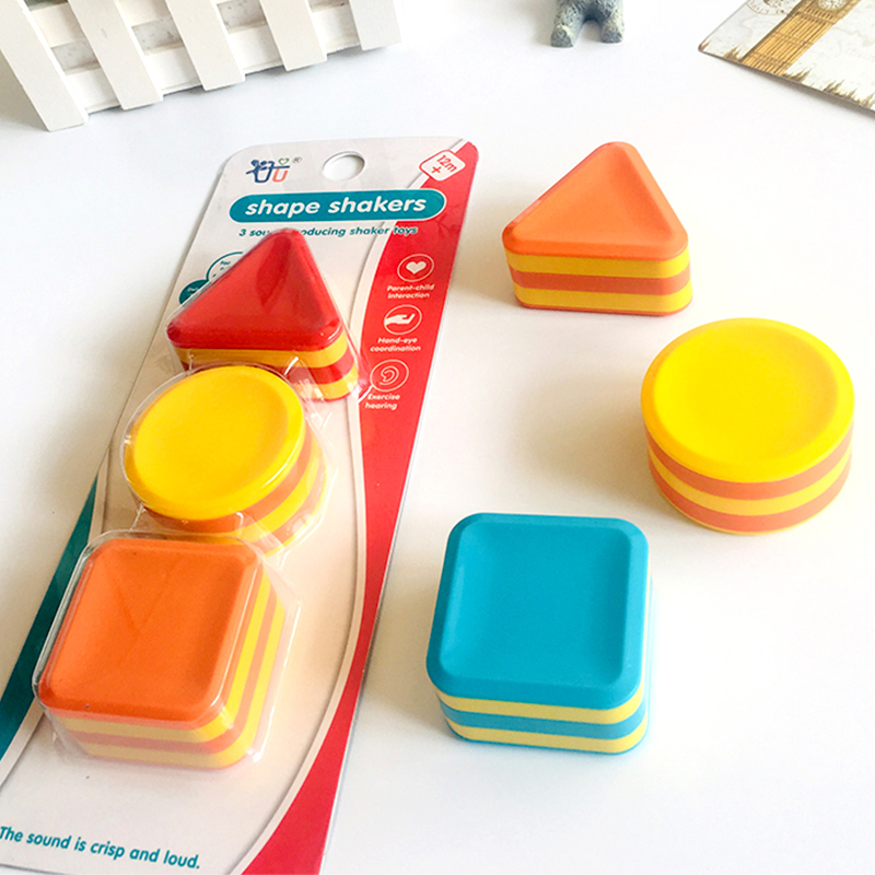 Sand box shape shake newborn music toy Three-color geometric sand hammer kindergarten early education teaching aids Orff musical instruments
