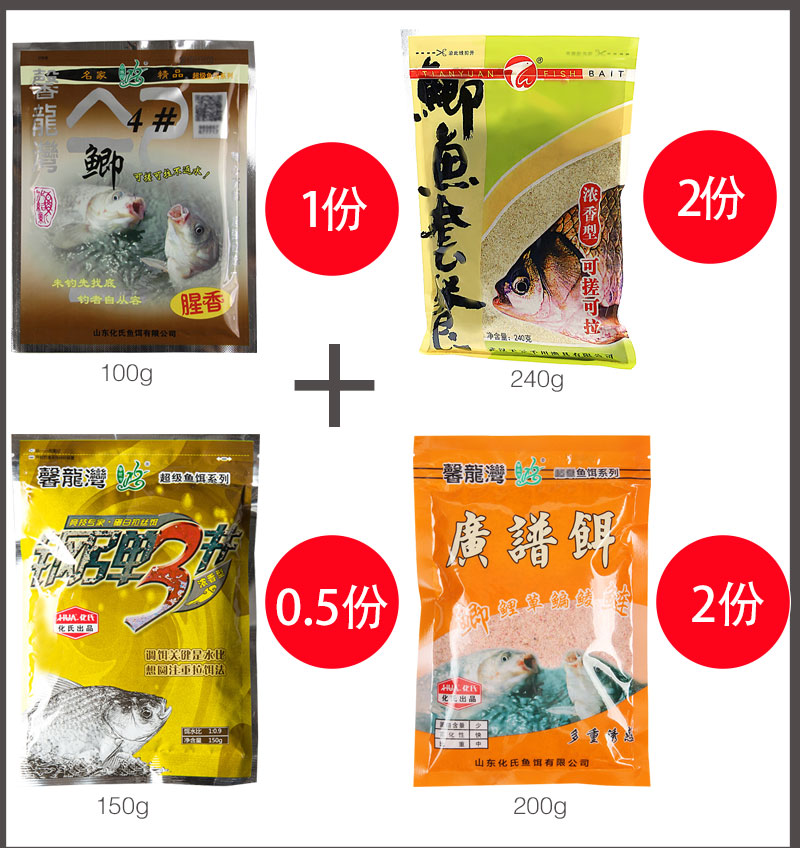 Li Dabenshi's new set meal (4 packs in total 690g) crucian carp set meal 240g (1 pack) Huashi No. 4 crucian carp 100g (1 pack) Hua's broad-spectrum bait 200g (1 pack) Hua's steel bomb No. 3