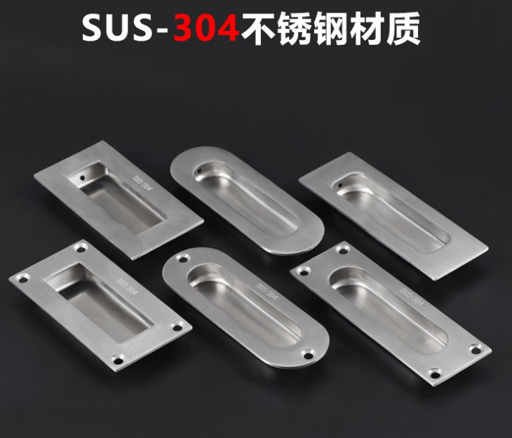 304 stainless steel dark handle embedded drawer cabinet flat handle hidden oval handle surface mounted button handle