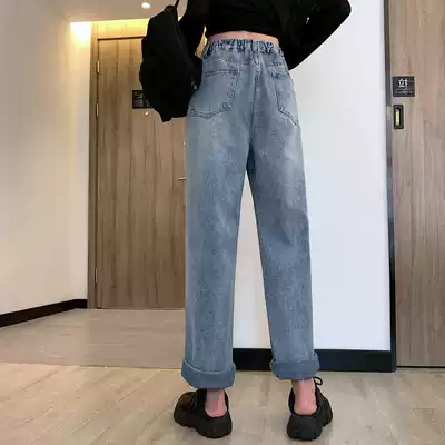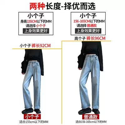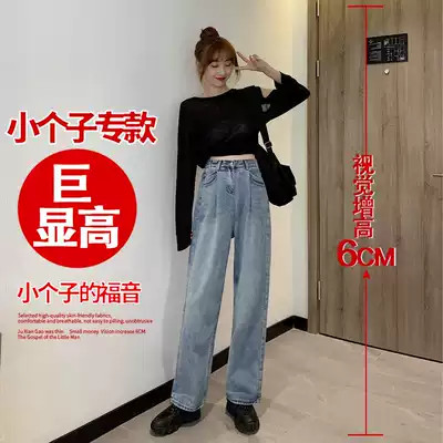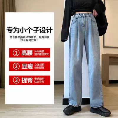 Small 150cm straight pants autumn and winter slim loose high waist wide leg jeans retro dark blue trousers
