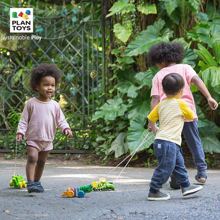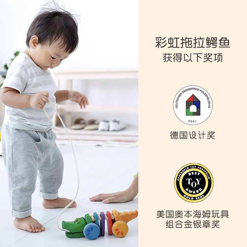 (Official Direct Sales) Baby schoolwalk drag crocodile imports plantoys wooden children pull-rope traction toy