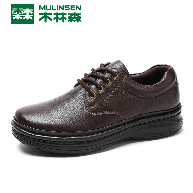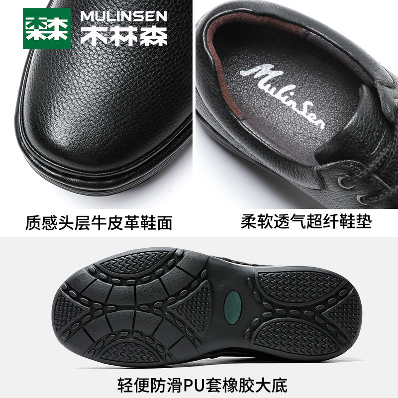 Wood Linson Men Shoes Business Casual Leather Shoes Men's Summer Real Leather Breathable Thick Bottom Lacing Mid Aged Dad Shoes Comfort