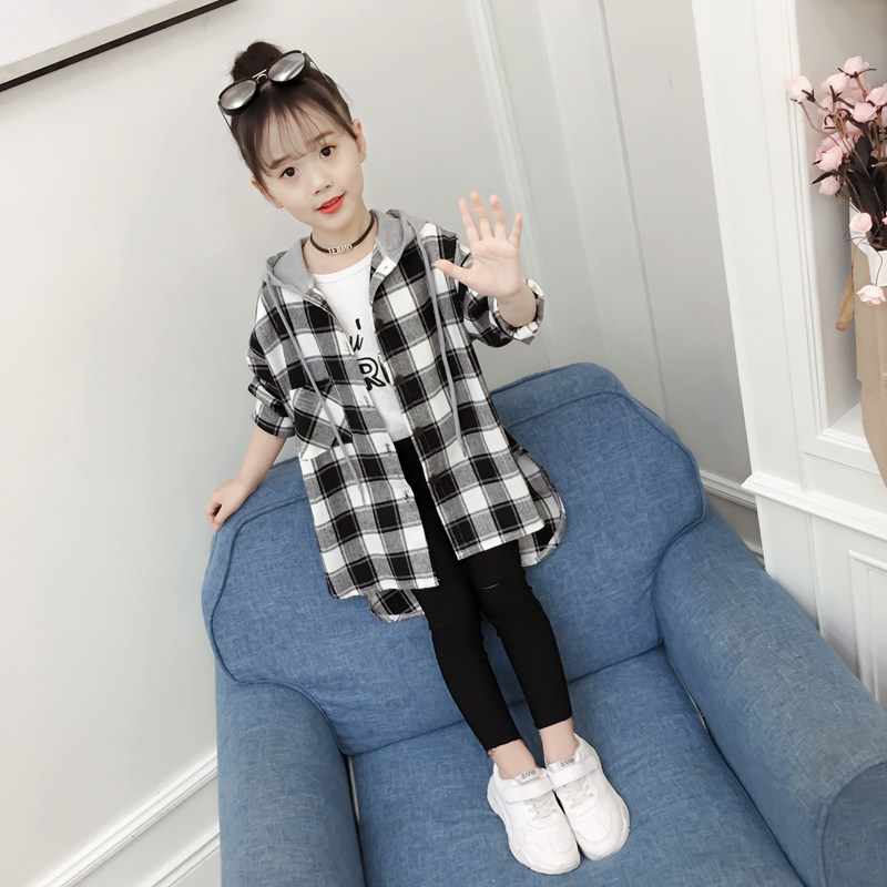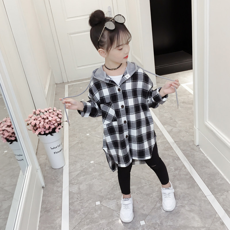 Girl Spring Dress Shirt 2022 New Children Plaid Shirt CUHK Child Korean Version Long Sleeve Foreign Pie Jacket Thin
