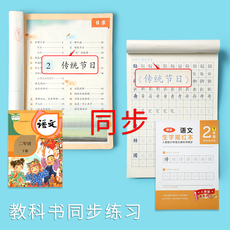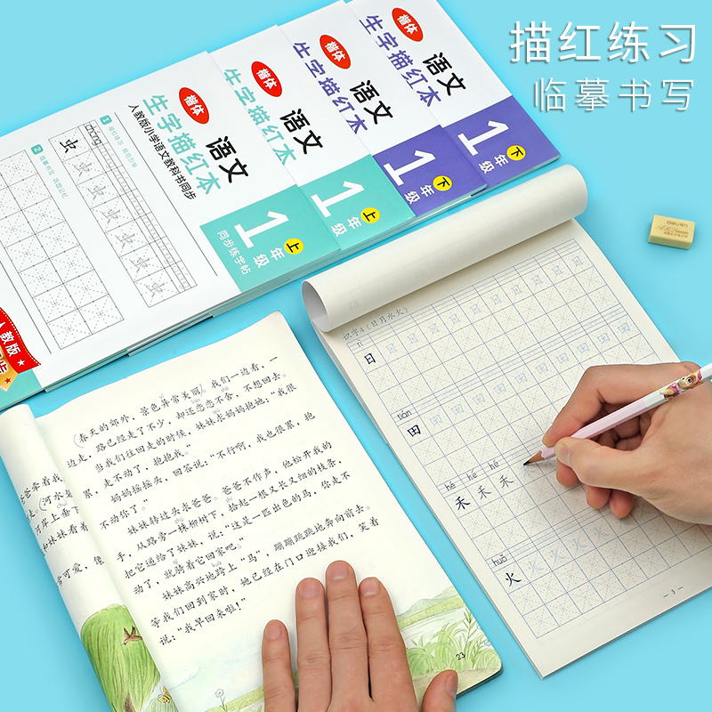 Able Elementary School Students Practicing Calligraphy Post Pinyin Chinese Characters Digital Sketching and sophomore books The upper and lower volumes of the upper and lower volumes of the upper and lower volumes of the book I teach the synced word post