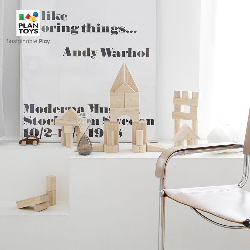 (official direct sales) imported PlanToys5502 logs 50 grain building blocks toy wooden parquet for children's puzzle