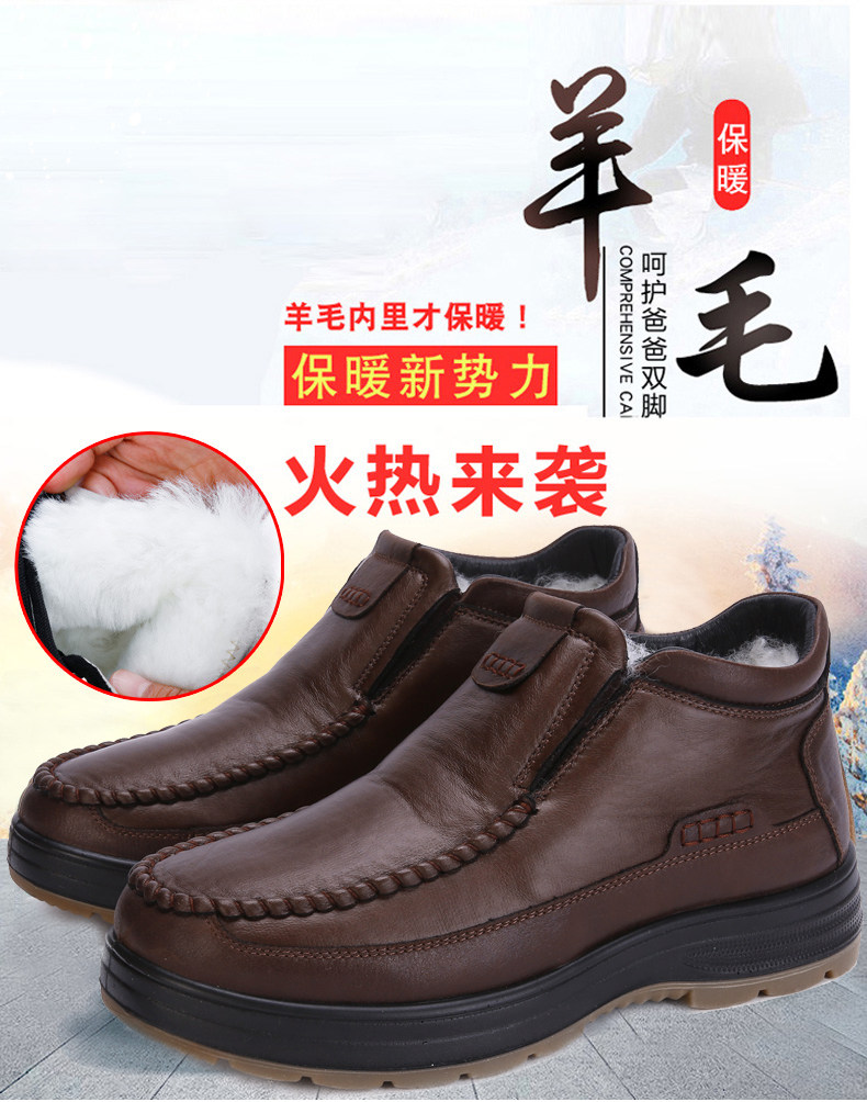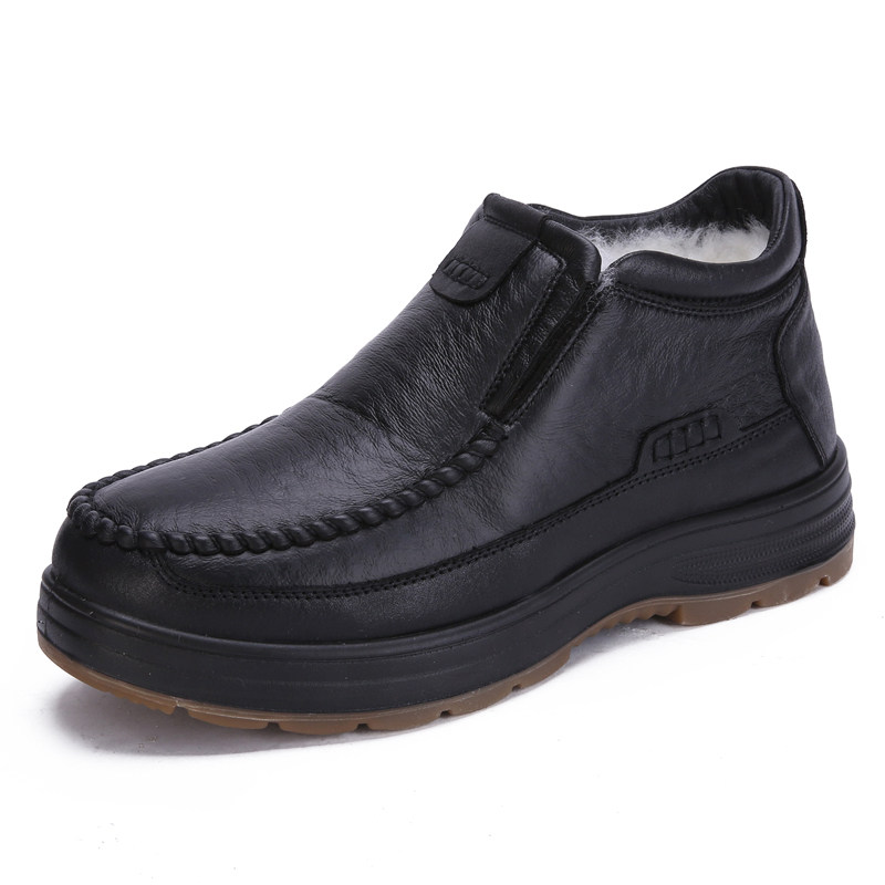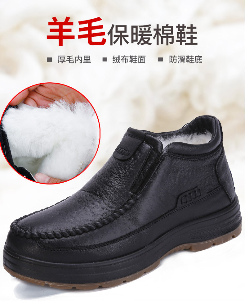 Old Beijing Cloth Shoes Winter Middle Aged Men's Gush Half Pure Wool Dad Big Cotton Waterproof Non-slip Bull Gluten Bottom Elder Boots