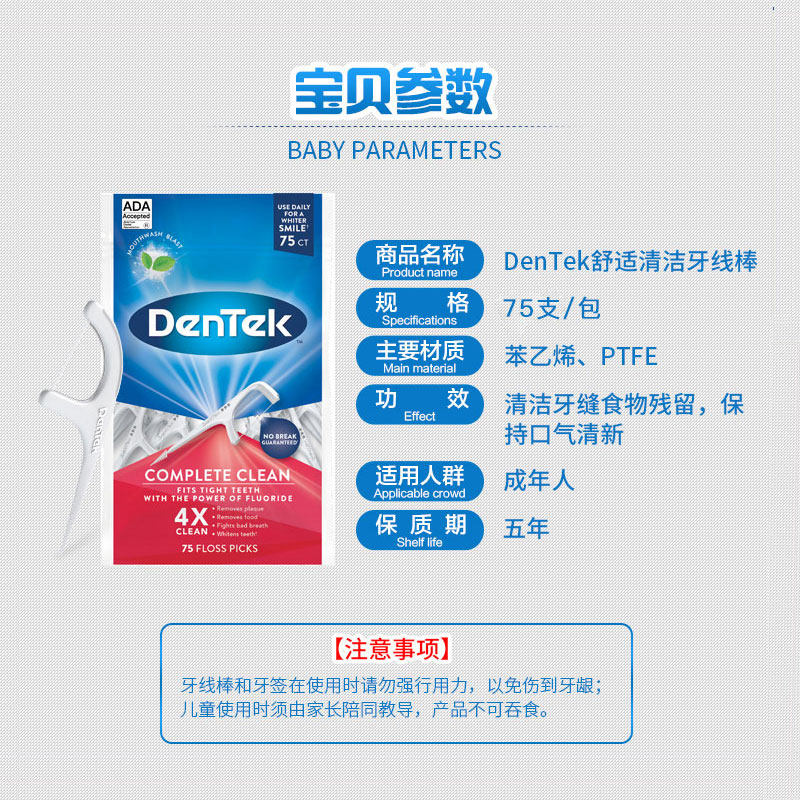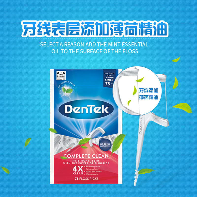 DenTek Detek original Imported Mint Taste Household Clothing Ultra-fine Flossing Fish Bone Toothpicks Floss 75