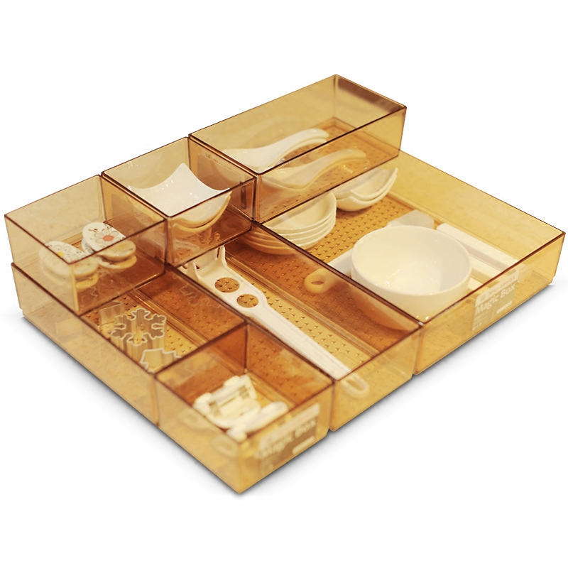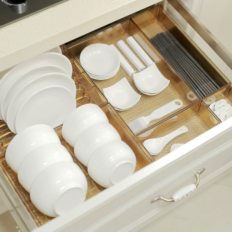 Drawer storage box partition grid kitchen divider box Japanese transparent plastic sorting tableware finishing cosmetic cabinet