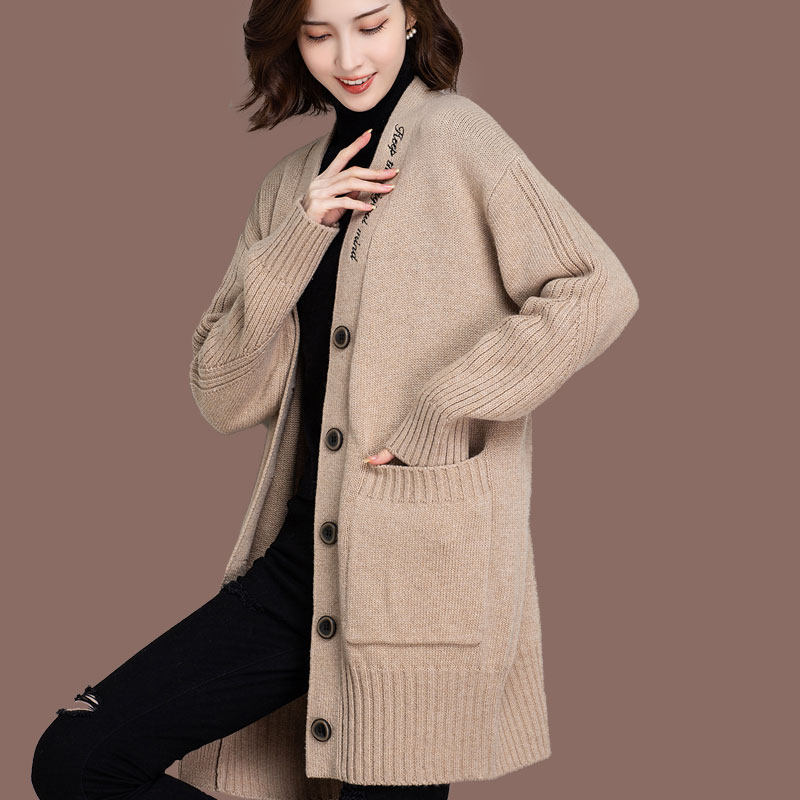Hengyuanxiang mid-length coat ladies sweater spring and autumn outfit 2022 new shawl wool knitted cardigan outerwear