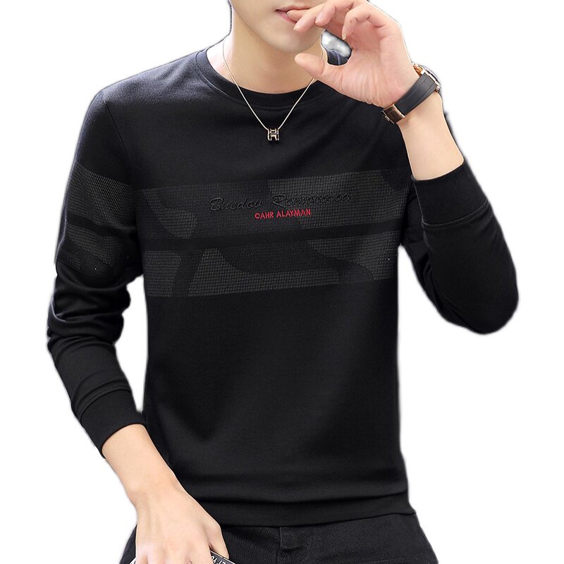 Men's Long Sleeve T-Shirt Spring and Autumn Korean Trend Casual Thick Cotton Men's Slim Round Neck Printed Pullover Cotton Underwear