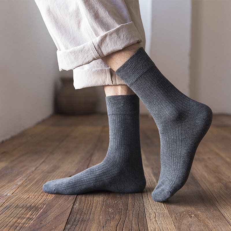 Nut Moms Pure color socks Men's middle cylinder white pure cotton full cotton deodorant suction sweaty black men's long cylinder socks