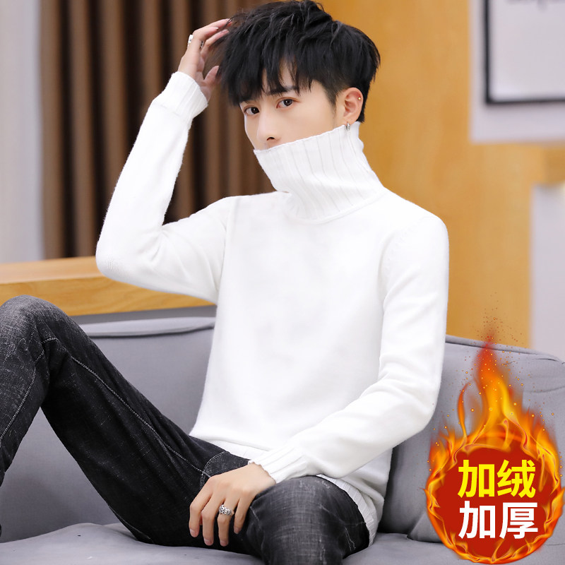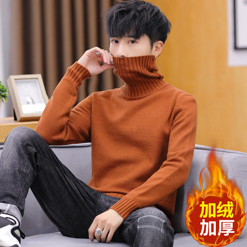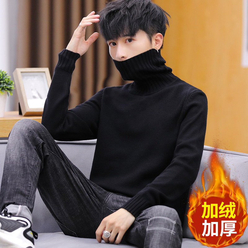 Turtleneck sweater men's plus velvet thickened middle collar Korean version of the trend of self-cultivation in autumn and winter men's warm bottoming sweater