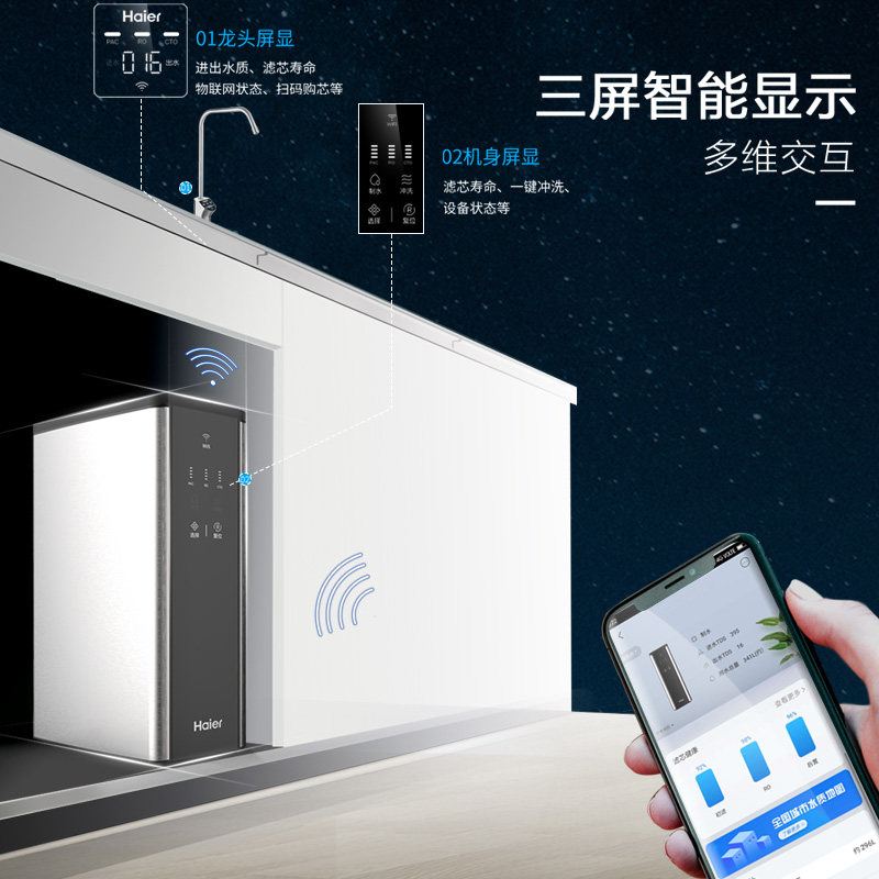 Haier Water Purifier Home Straight Drinking Filter Kitchen Tap Water RO Reverse Osmosis Machine With Filter Core Tap Steel Strontium