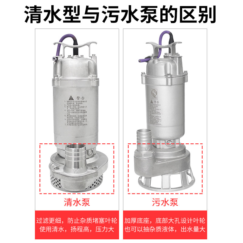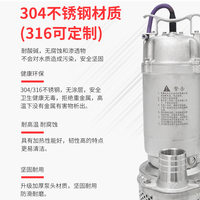 Amter 304 all stainless steel sewage pump household small 220v high lift corrosion resistant submersible pump sewage pump
