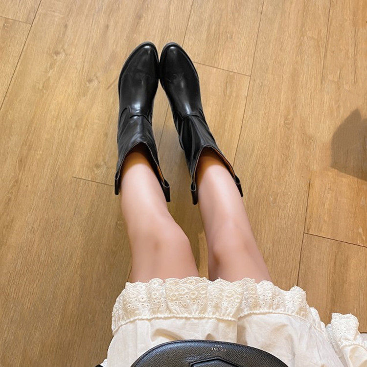 ins - niche design Super - beauty stay in Korean retro - tip with real leather high boots west cowboy boots