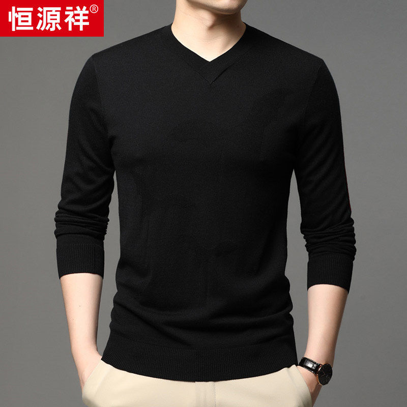 Heng Yuan Xiang new men V neck knitwear young chicken heart neck sweater autumn and winter outfit containing wool bottom shirt tide
