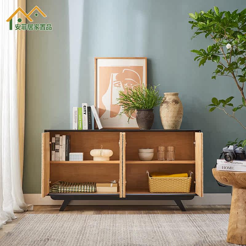 Dining cabinet solid wood Nordic modern minimalist tea water cabinet integrated by wall Home containing cabinet Living room light and luxurious closing cabinet