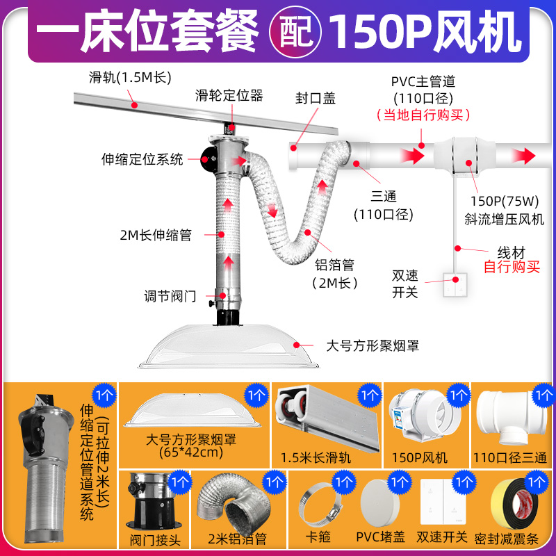 Single sleeve smoke exhaust system without ventilator-generous hood 1 bed 150P ventilator-generous hood 65 * 42cm2 beds 150P ventilator-generous hood 65 * 42cm2 beds