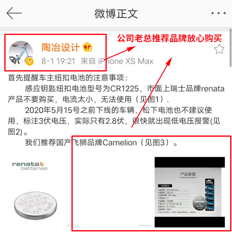 Qidian KD150-U U1 U2 Induction key button battery CR1225 Shengshi ZT310-X-R-T-V battery