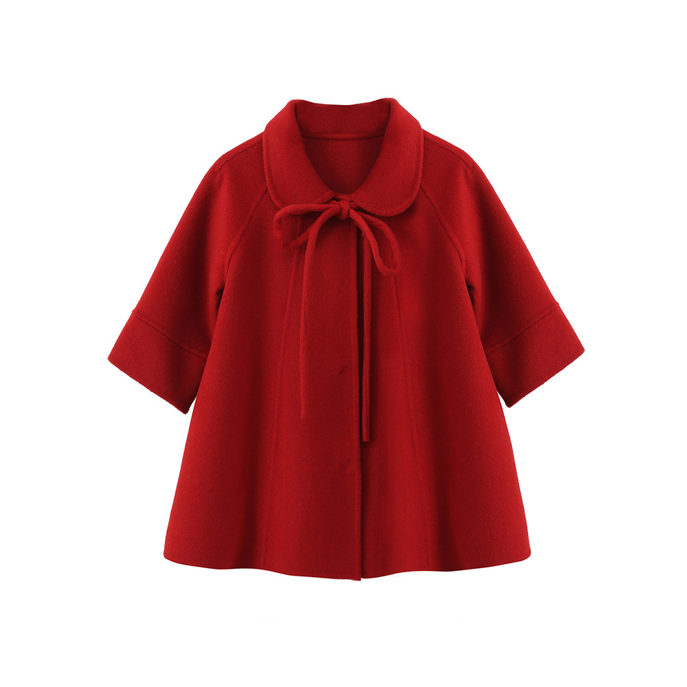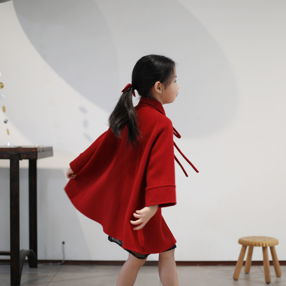 Girls cape red double-sided fleece wool coat 2022 princess autumn and winter dress foreign style thickened children's woolen coat
