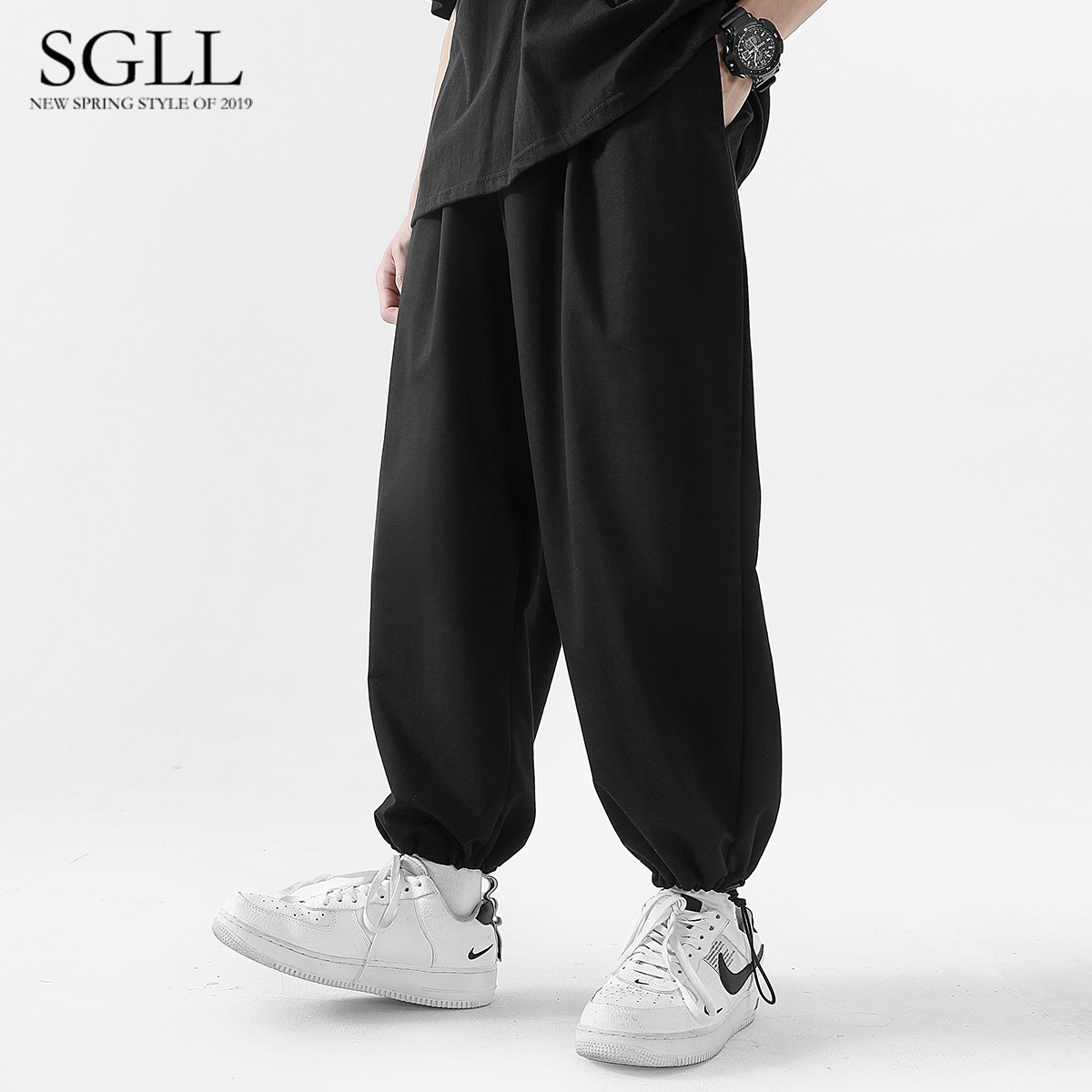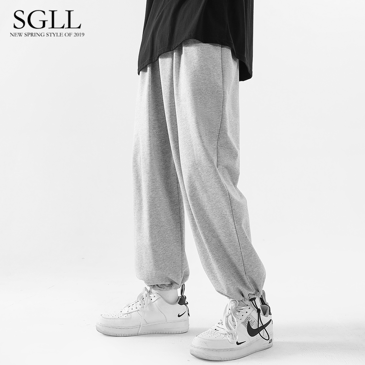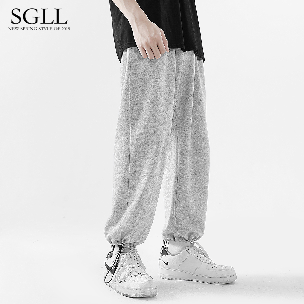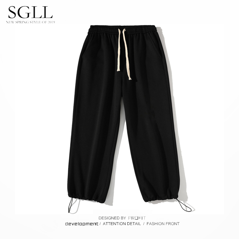 Grey Sports Thick cotton pants Male bunches pants Summer thin sections Broadleg Straight Cylinder 90% Pants Casual Pants Drawing Rope Bunches Pants