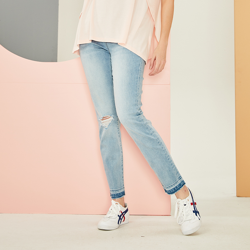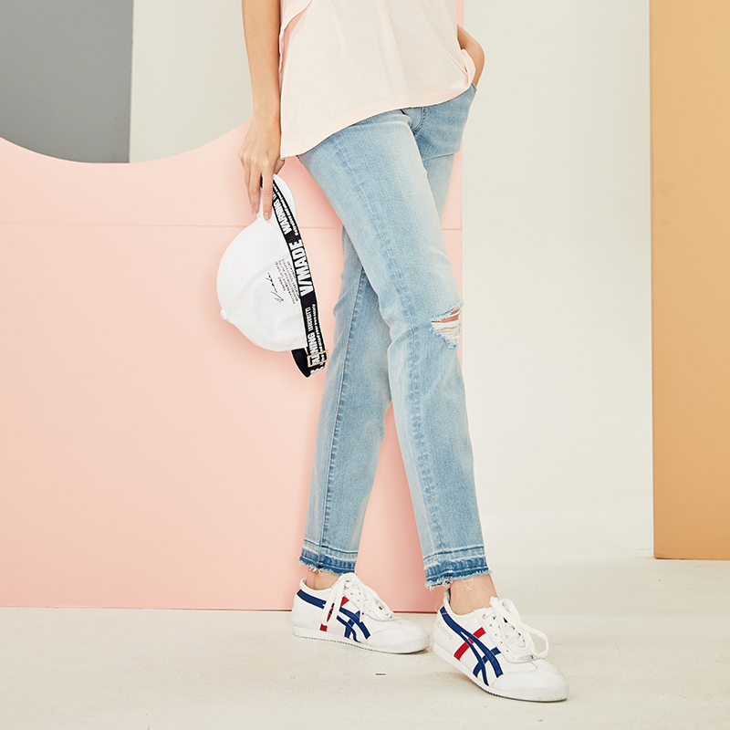 October mommy maternity pants fashion high waist slim foot mouth raw edge denim pencil pants maternity clothes autumn