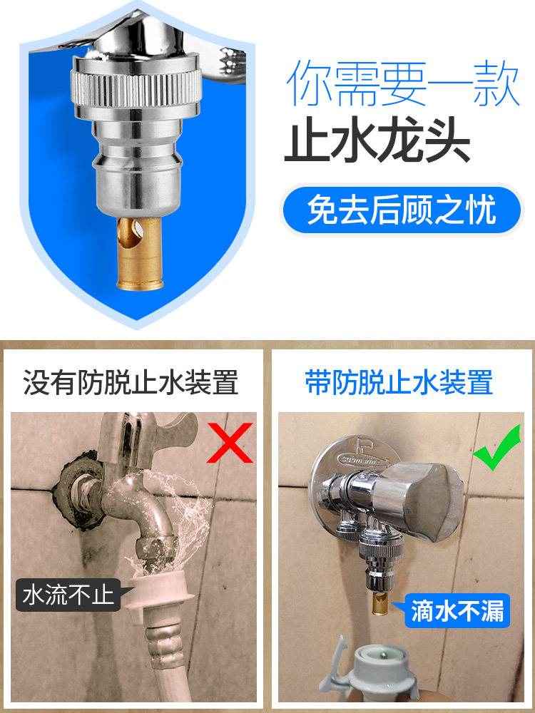 Submarine automatic washing machine connector special faucet household all-copper automatic water stop nozzle triangle valve connector