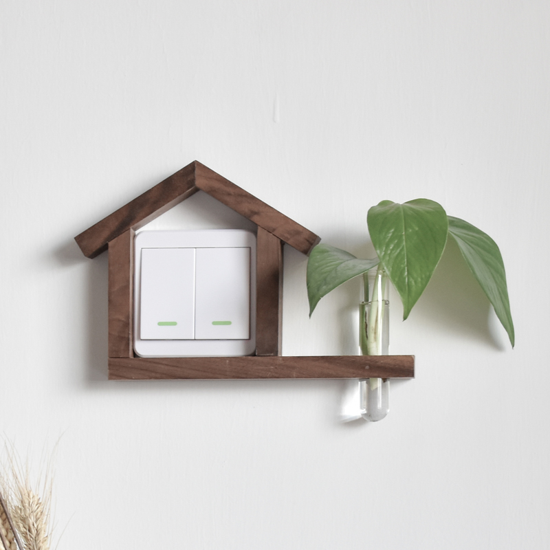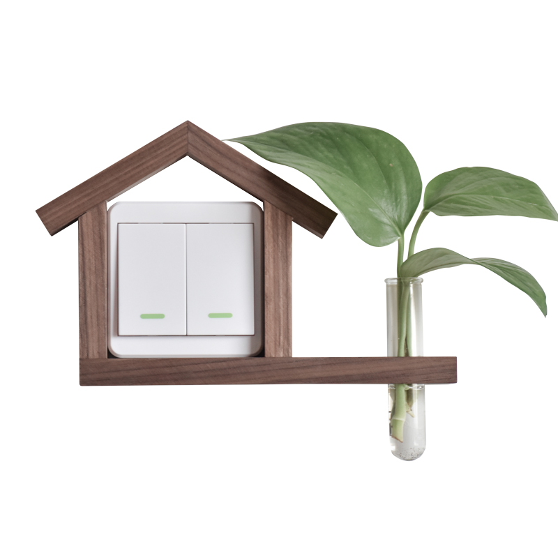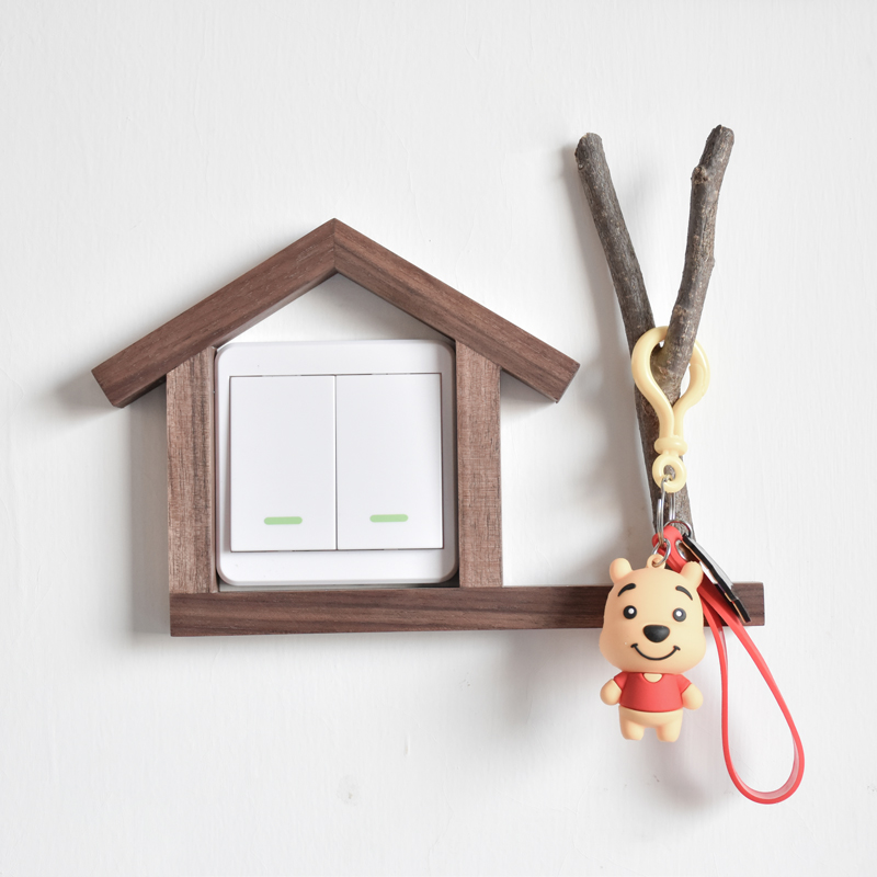Nordic style solid wood single open switch paste creative personality log wall sticker Socket protection set decoration hanging decoration Hanging decoration