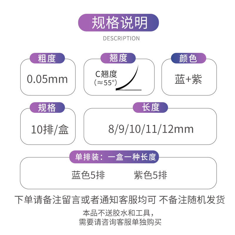 Blue Purple Yy Color Grafted Eyelash Y Letterline 0 05 Ultra Soft Y Type Beauty Mascara and Airy Mix girl
