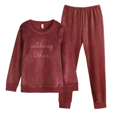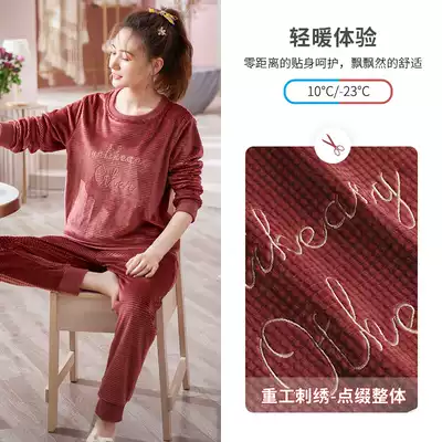 Pajamas female spring and autumn thickened warm island velvet suit autumn and winter thin coral velvet home clothing Casual can be worn outside