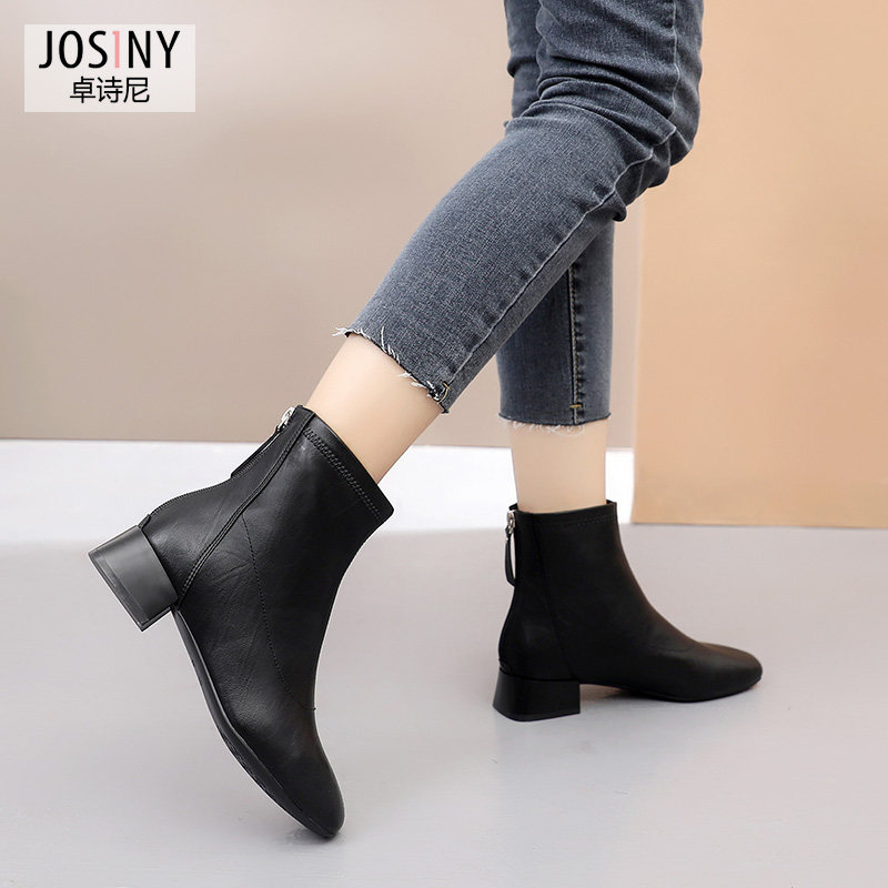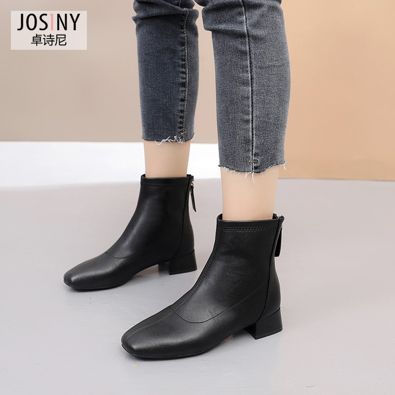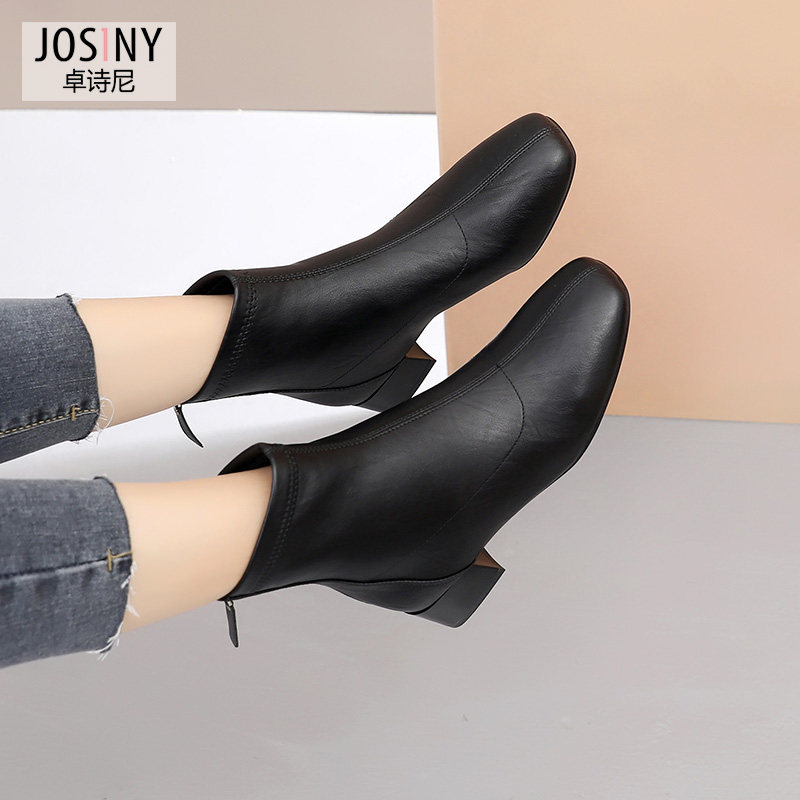 Zhuoshini 2021 winter new square head thick heel middle heel zipper fashion boots women commuter European and American style short barrel boots