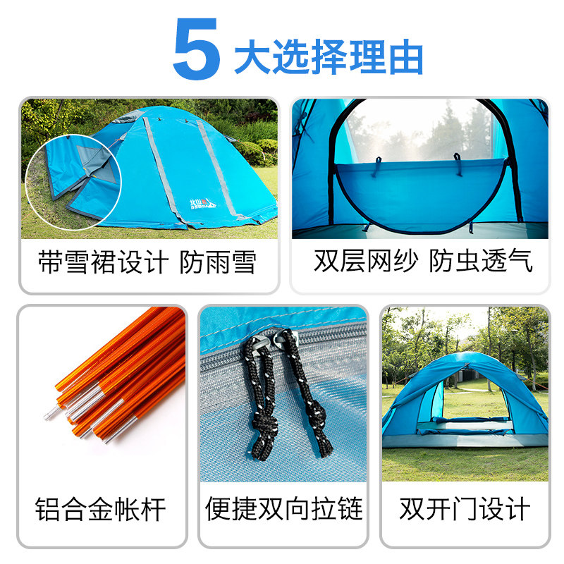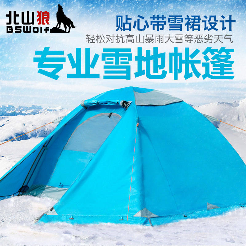 BSWolf outdoor camping tent Double double aluminum pole rain and snow with snow skirt windproof mountaineering camping tent
