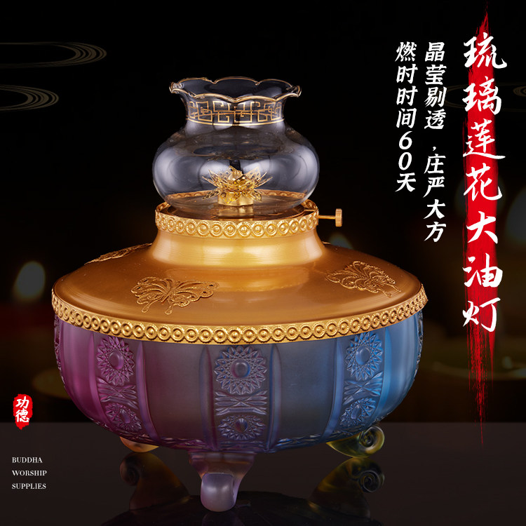 For the Buddha oil lamp extra large glass lotus liquid butter lamp Buddha hall Temple Buddha temple in front of the offering windproof lamp holder