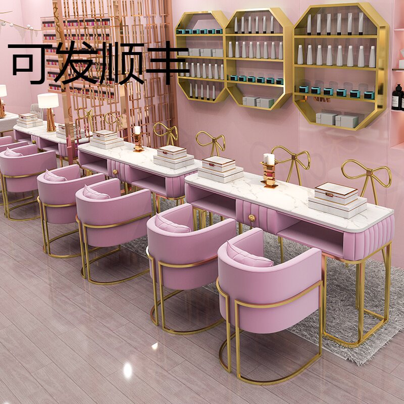 High-end marble manicure table and chair set net celebrity single double-layer manicure table double manicure table modern workbench