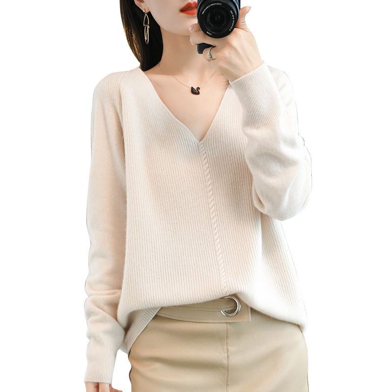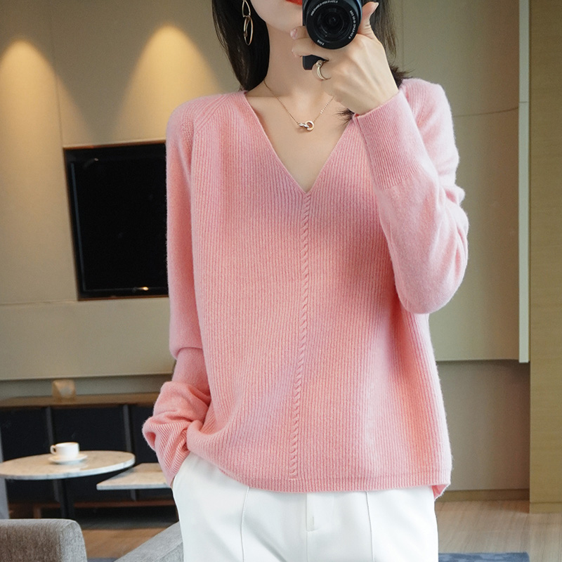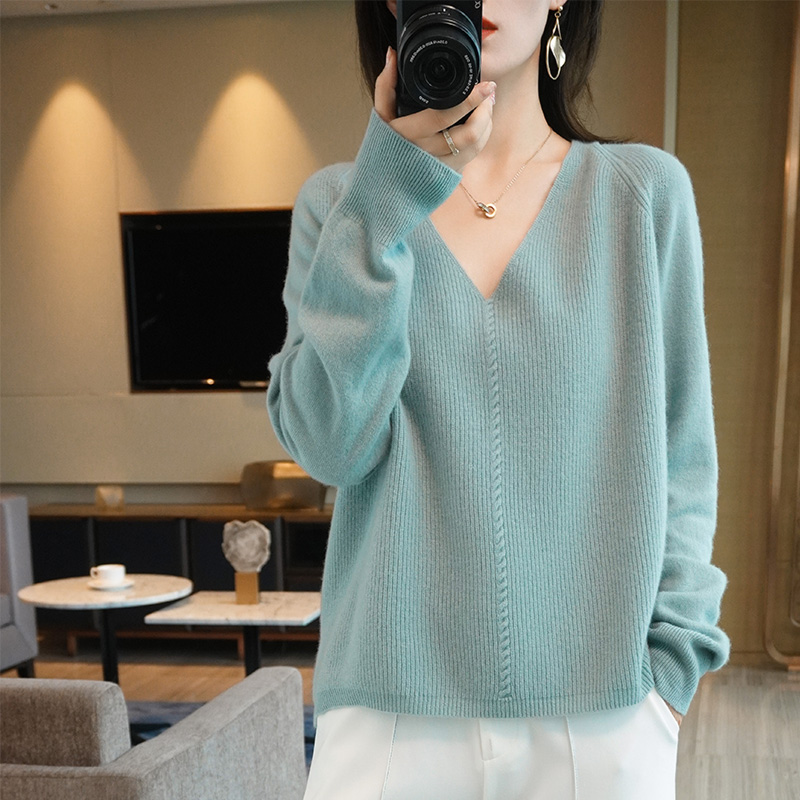Autumn and winter new woolen sweater women's V-neck loose slim sweater long-sleeved all-match temperament solid color bottoming sweater