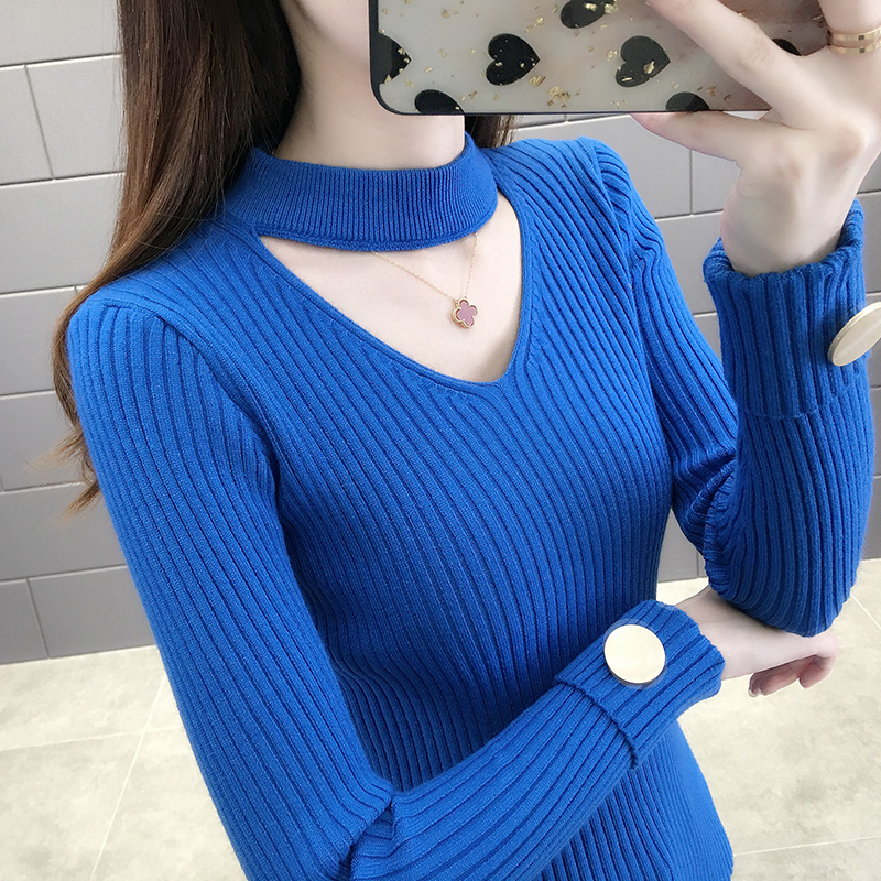 Bottoming shirt women's autumn wear 2022 new Korean version of the Western style hollowed out all-match self-cultivation long-sleeved knitted top trendy