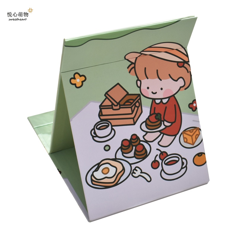 Mirror Home Small desktop Makeup Ins Portable Cartoon Folding Paper Mirror Big Idea Cute Girl Dorm Room