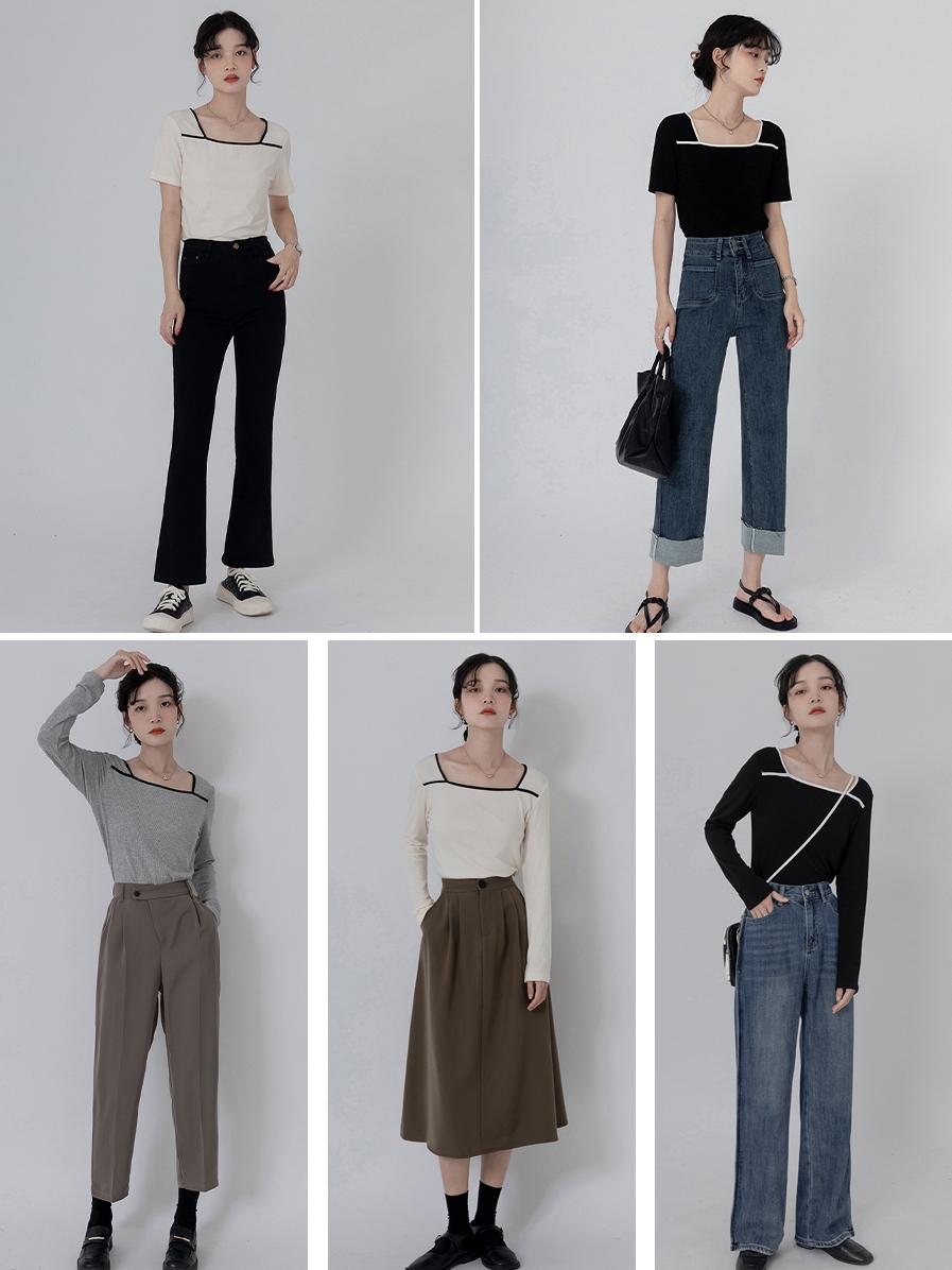 (GUIER) square-collar hit undershirt long sleeve t-shirt woman 2023 new autumn clothing loot inside the suit woman-Taobao