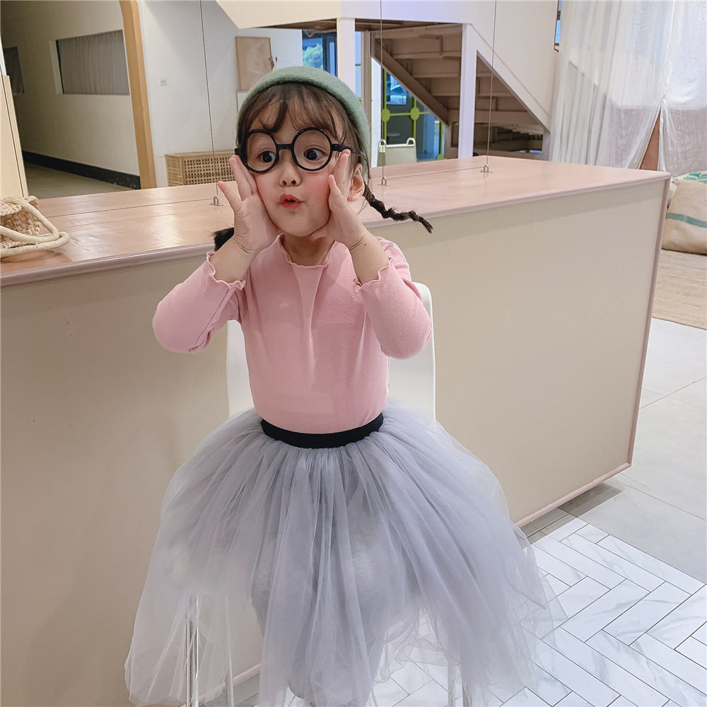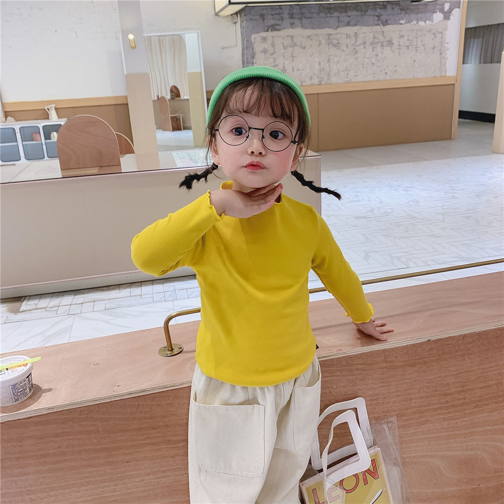 Girls' bottoming shirt 2020 autumn and winter children's fungus edge cotton T-shirt solid color 1-7 baby semi-high collar outer top